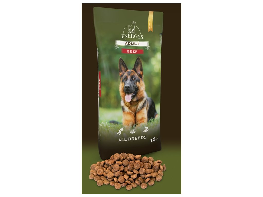 Adult Dog all breeds BEEF je prémiové vyvážené krmivo bohaté na hovězí vhodné pro dospělé psy všech plemen. obsahuje 30 % hovězího a vepřového. 70 % bílkovin je živočišného původu, což zajišťuje výbornou výživovou hodnotu a skvělou stravitelnost