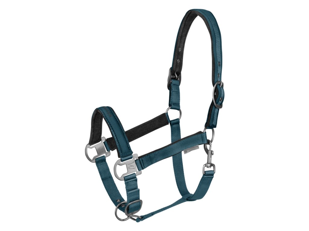 Kvalitní ohlávka s měkkým polstrováním v oblasti krku a nosu a také na lícnicích. Anatomický nátylník pro příjemný komfort nositele. Na řemínku pod bradou a náhlavní soupravě je možné vícenásobné nastavení. S kovovým kováním ve stříbrné barvě.