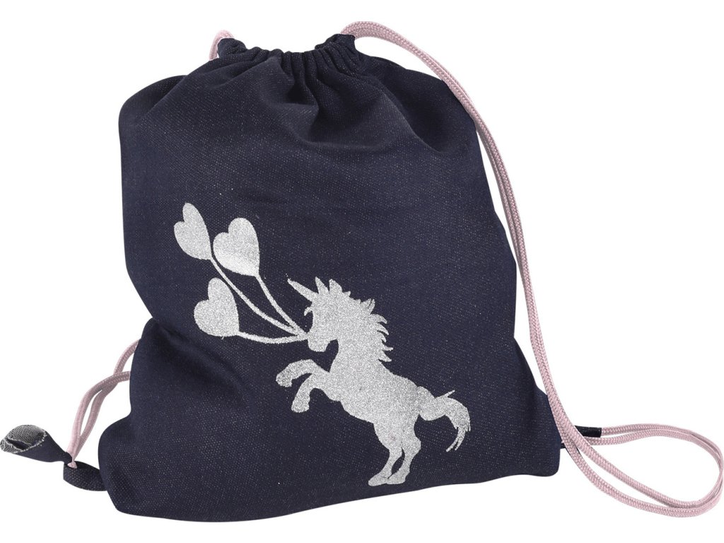 Roztomilý batoh s třpytivým jednorožcem na přední straně.