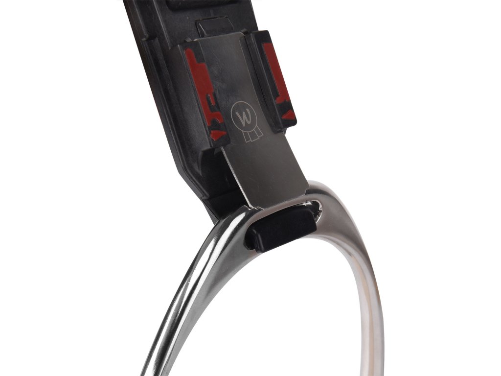 Nová třmenová pojistka Walhausen - pokud se noha jezdce zaklíní do třmenu, jezdec se v případě pádu oddělí od koně. Pokud třmen dosáhne určitého úhlu v bezpečnostní sponě, oba se od sebe oddělí.