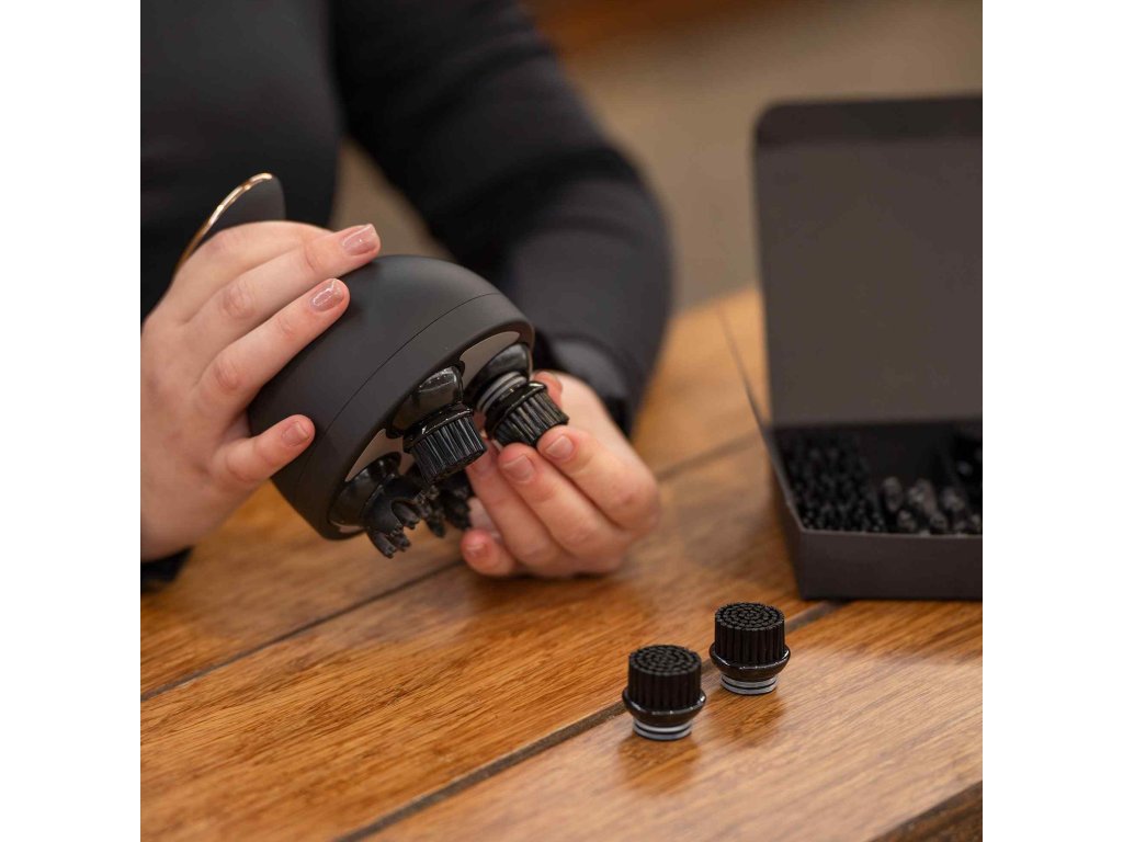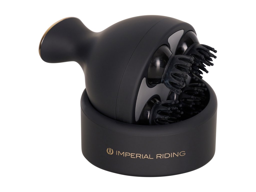 Pečující kartáč na srst Imperial Riding pro maximální relaxaci koní, odolný proti zamotávání, s bezdrátovým nabíjením a 5 rotačními hlavicemi