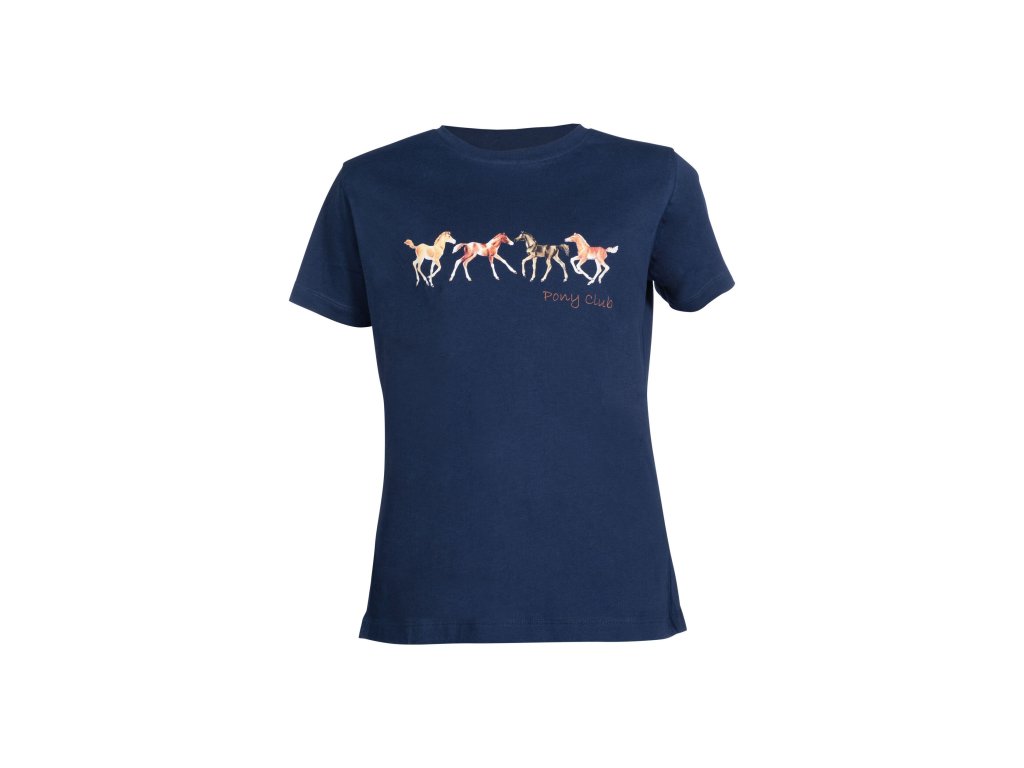 Dětské jezdecké triko tmavě modré barvy s hříbátky