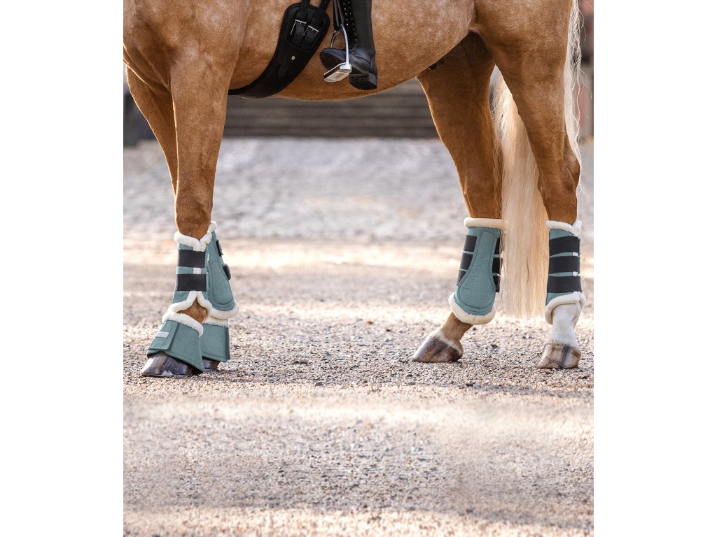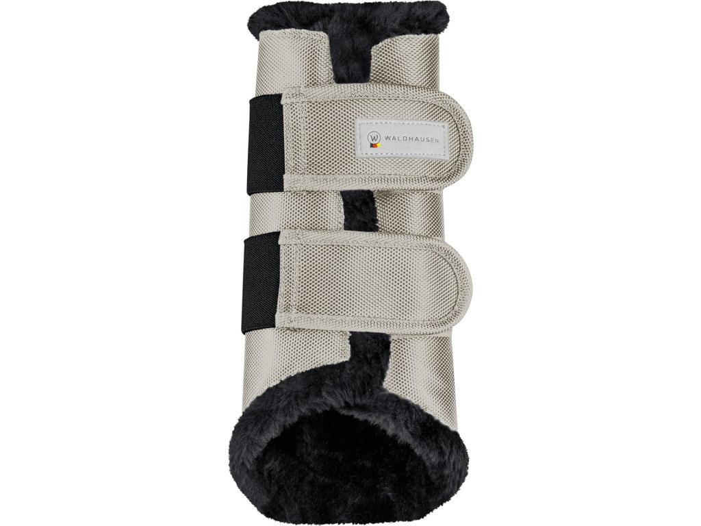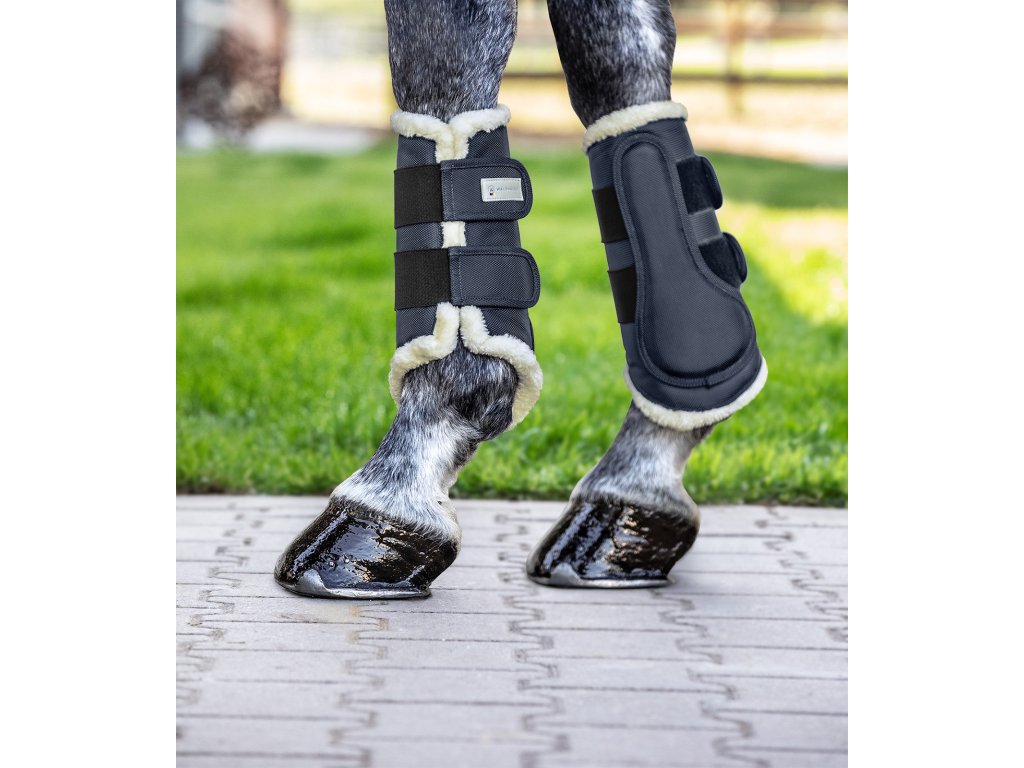 Odolné chrániče pro přední a zadní nohy. Polstrované syntetickou kožešinou. Optimální ochrana proti okopu a strouhání kloubů. Velikost M má dvě dotykové pásky, velikosti L a XL mají tři zapínání na dotykovou pásku. Vnější materiál z 1680 denier. Dodáváno v páru.