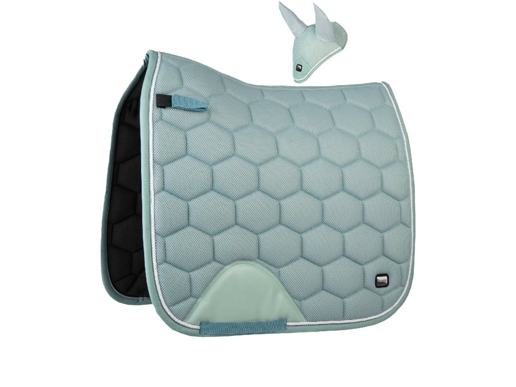 Elegantní sada z mesh materiálu, podsedlová dečka pod sedlo a čabraka na hlavu proti hmyzu.