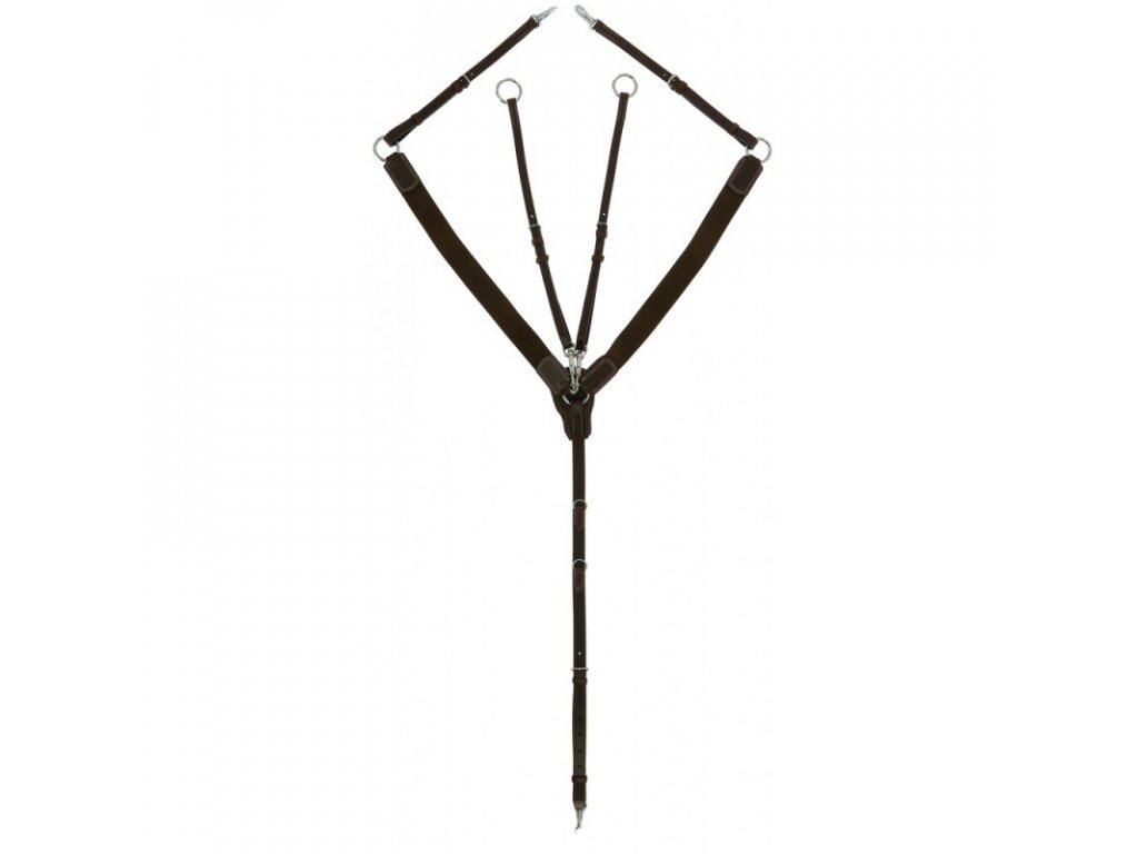 Kožený elastický poprsák , tříbodový s elastickou vsadkou a odepínací martingalovou vidlicí od značky Norton.
