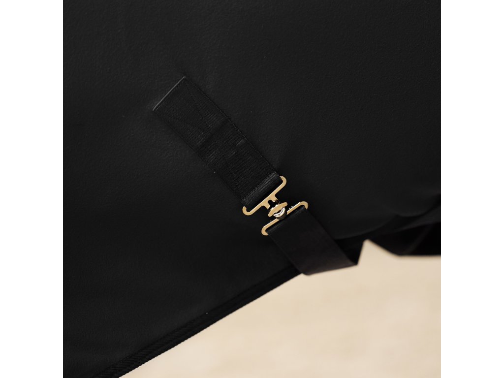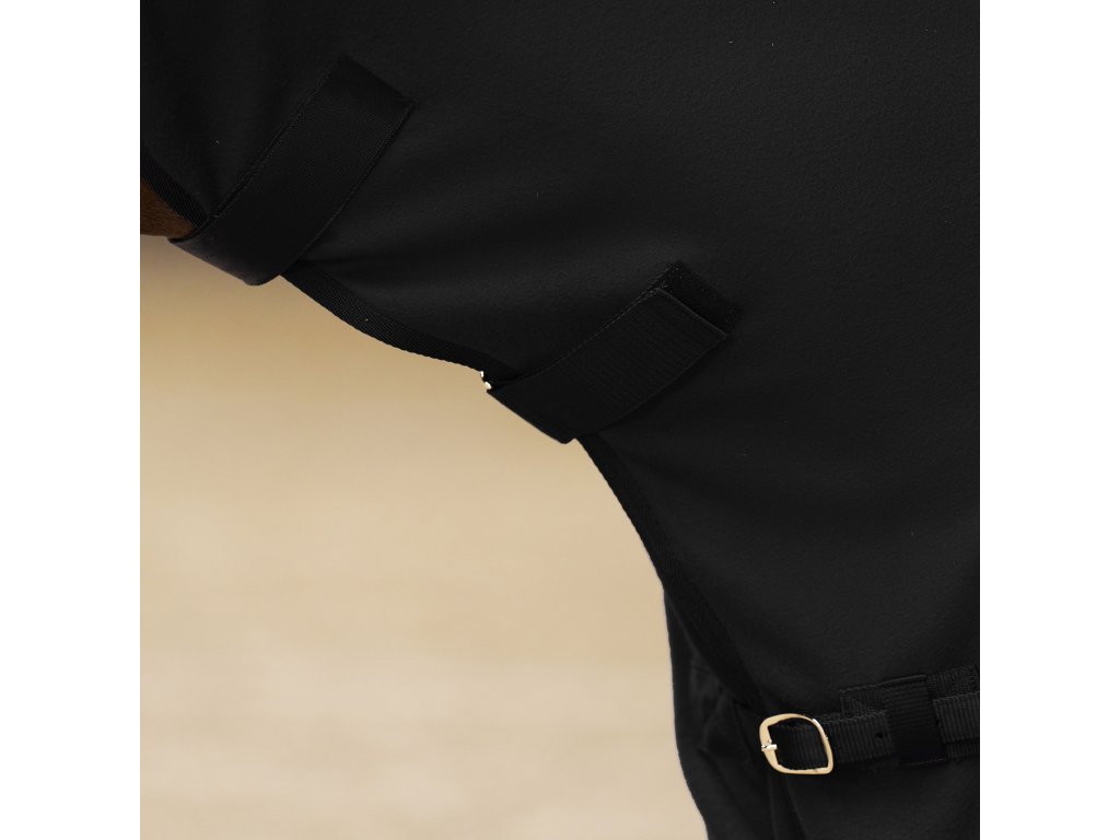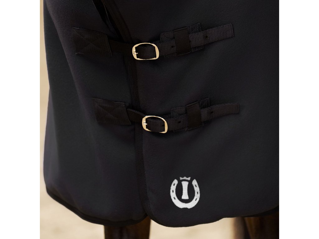 Navržena tak, aby zaujala ve stáji i na závodech, tato elegantní deka spojuje sofistikovaný vzhled s praktickou funkčností. Prémiový měkký polar fleece poskytuje výjimečné pohodlí a teplo, zatímco křížové popruhy a dvojité zapínání vpředu zaručují jisté a dokonale padnoucí uchycení. Dvojité zapínání na suchý zip u krku přidává extra zateplení a stabilitu, doplněné o praktické poutko pro snadné připevnění k ohlávce. Celkový vzhled završuje elegantní kovové vyšívané logo, které dodává dece stylový a luxusní charakter.