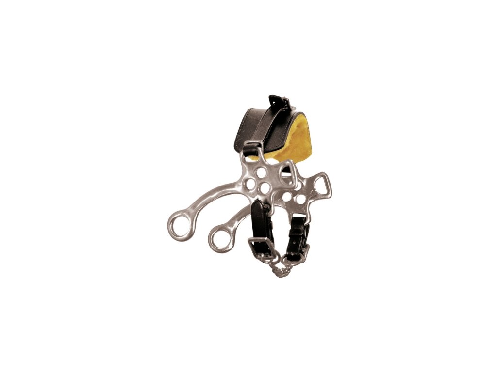 Hackamore - nánosník z buvolí kůže lemovaný syntetickou ovčí vlnou. Kratší ramena ve stříbrné barvě.