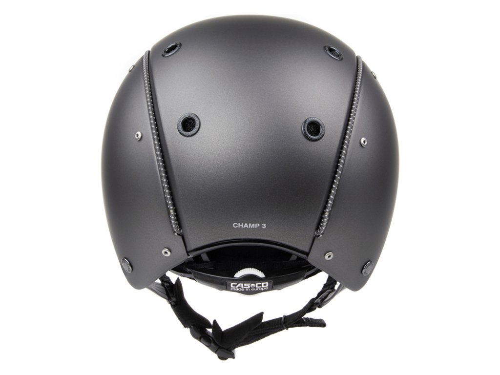 Špičková elegantní jezdecká helma Casco Champ 3. Možnost nastavení okolo hlavy pomocí systému Disk-Fit Vario kolečka umístěného v zadní časti hlavy. Helma je pevná, lehká, perfektní větrací systém. Vnitřní polstrování lze snadno vyjmout a vyprat.