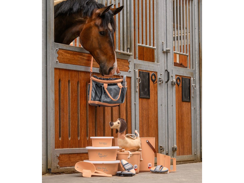 Hračka pro koně s jezevčíkem Dieterem od Waldhausenu má působivě okouzlující design. Jezevčík Dieter přináší zpestření a zahání nudu ve stáji. Stisknutím bříška vydává zábavný praskavý zvuk, který probouzí zvědavost koně. Hračku lze bez námahy uchopit a otáčet s ní, což poskytuje další zábavu při hraní. Integrovanou plastovou láhev lze snadno vyjmout nebo vyměnit díky praktickému zapínání na suchý zip. Lano na zadní straně usnadňuje zavěšení jezevčíka Dietera.