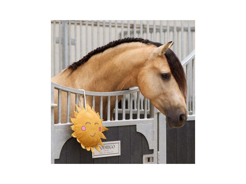 Veselá hračka ve tvaru slunce, která vašemu koni zabrání nudě. Semišový vnější materiál dodává hračce další vrstvu zajímavosti.