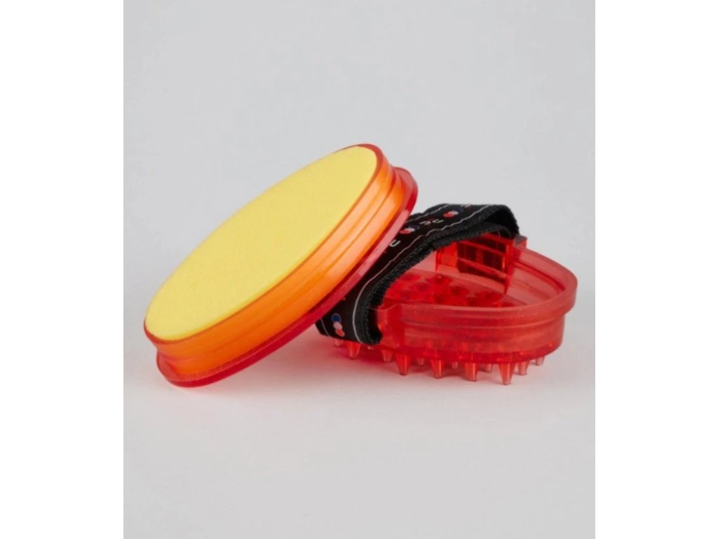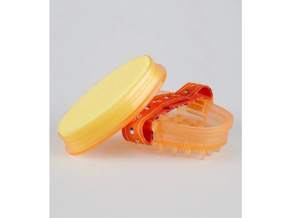 Toto inovativní hřbílko kombinuje nastavitelný popruh pro pevný úchop a odnímatelnou houbičku.