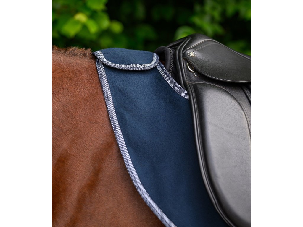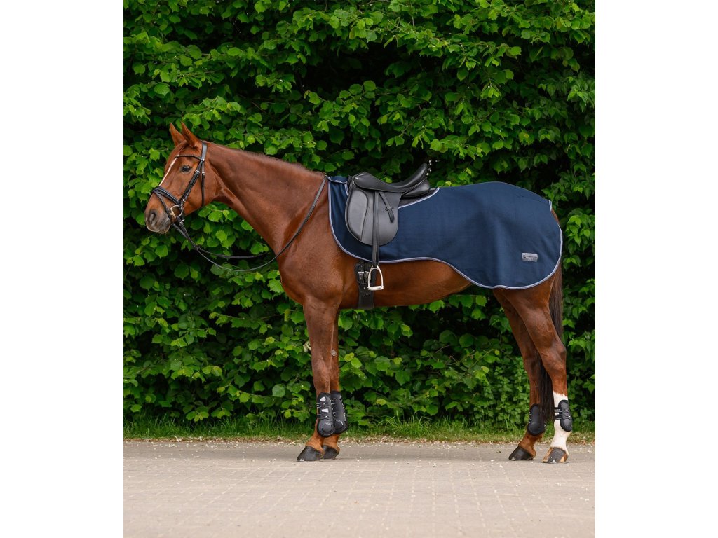 Klasická jezdecká deka kombinuje atraktivní design s funkčností. Deka se v kohoutku zapíná praktickým suchým zipem a šňůrka na zadních končetinách zajišťuje optimální padnutí.