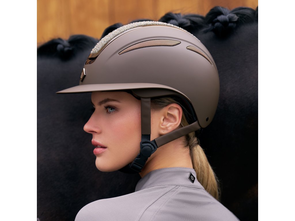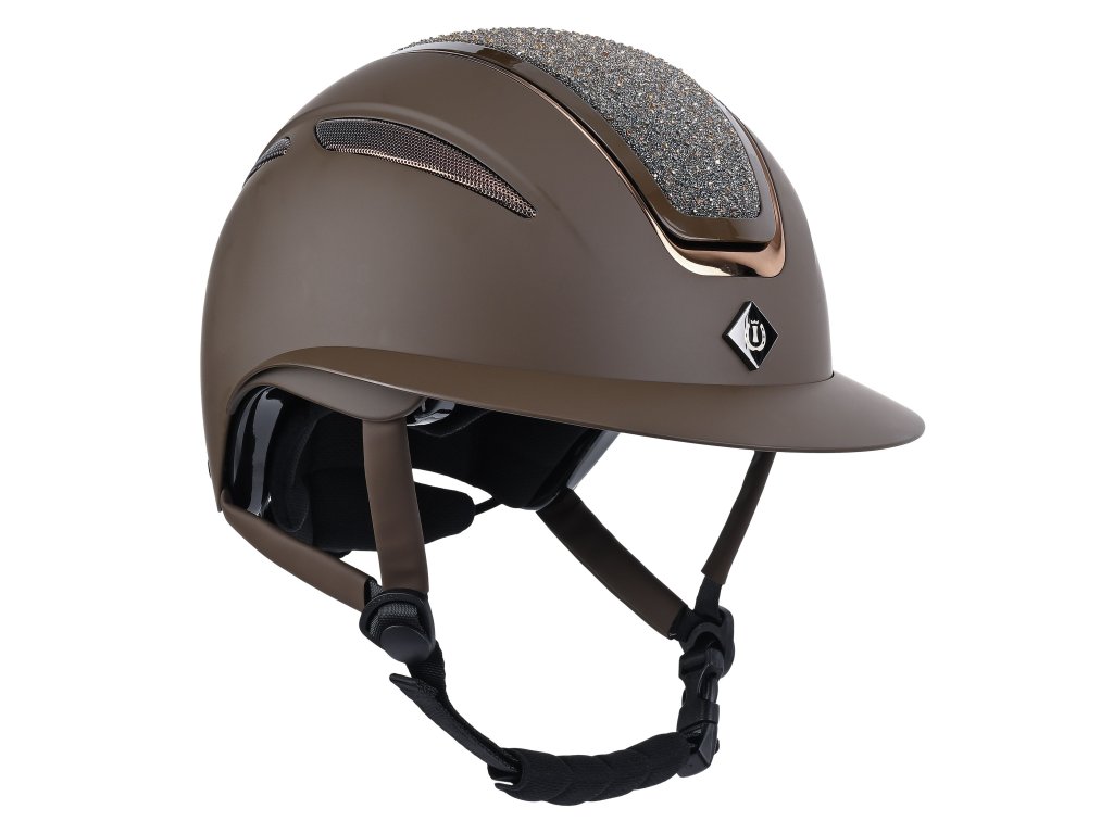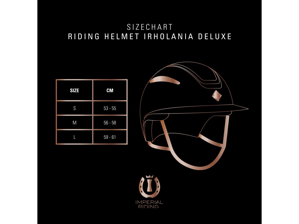 Jezděte stylově s naší jezdeckou helmou IRHOlania Deluxe. Helma je k dispozici s velkým kšiltem, v závislosti na vašich osobních preferencích. Šik třpytivé zdobení nahoře vás v aréně zaručeně rozzáří.