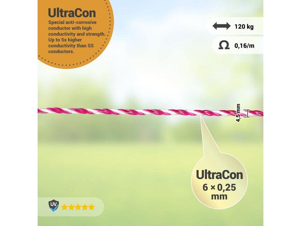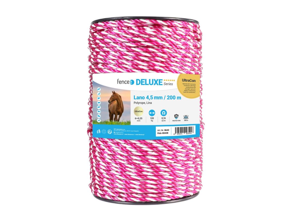 Lano pro elektrický ohradník, průměr 4,5 mm, růžovo-bílé, 200 m, 0,16 Ω/m