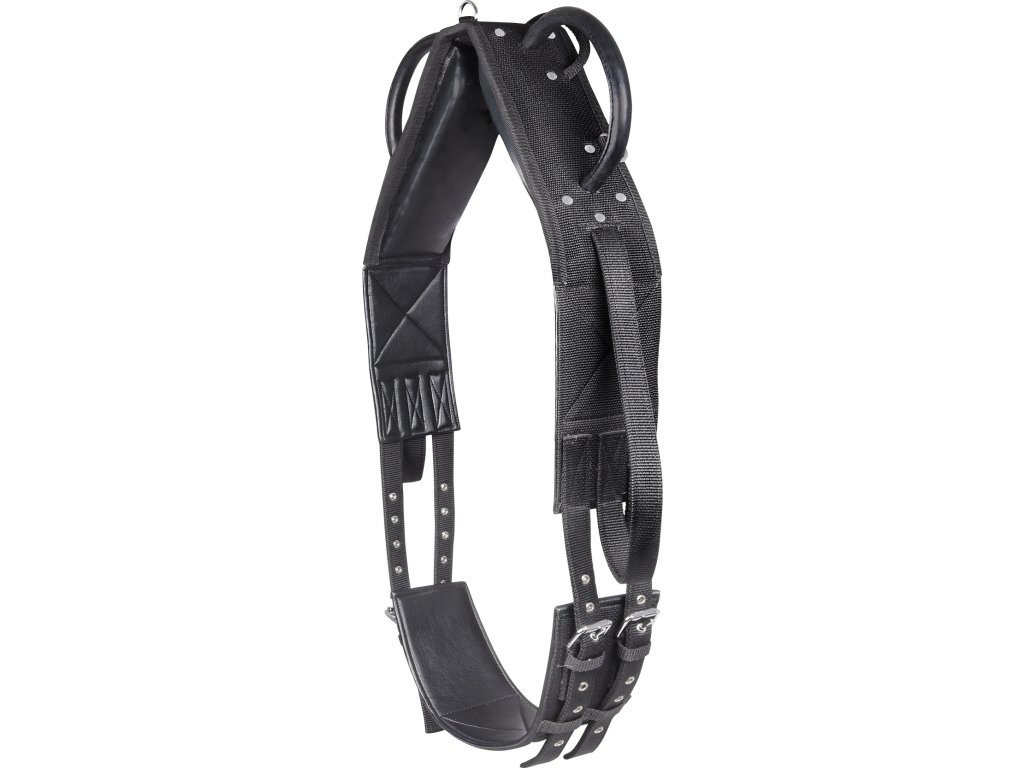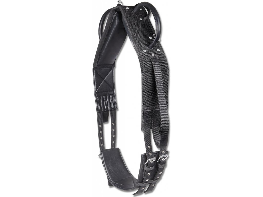 Ideální tréninkový obřišník ze syntetického materiálu. Pevná madla a středový popruh, poutka na obou stranách, 3 k připevnění bočních otěží atd. Ideální pro voltiž a lonžování.