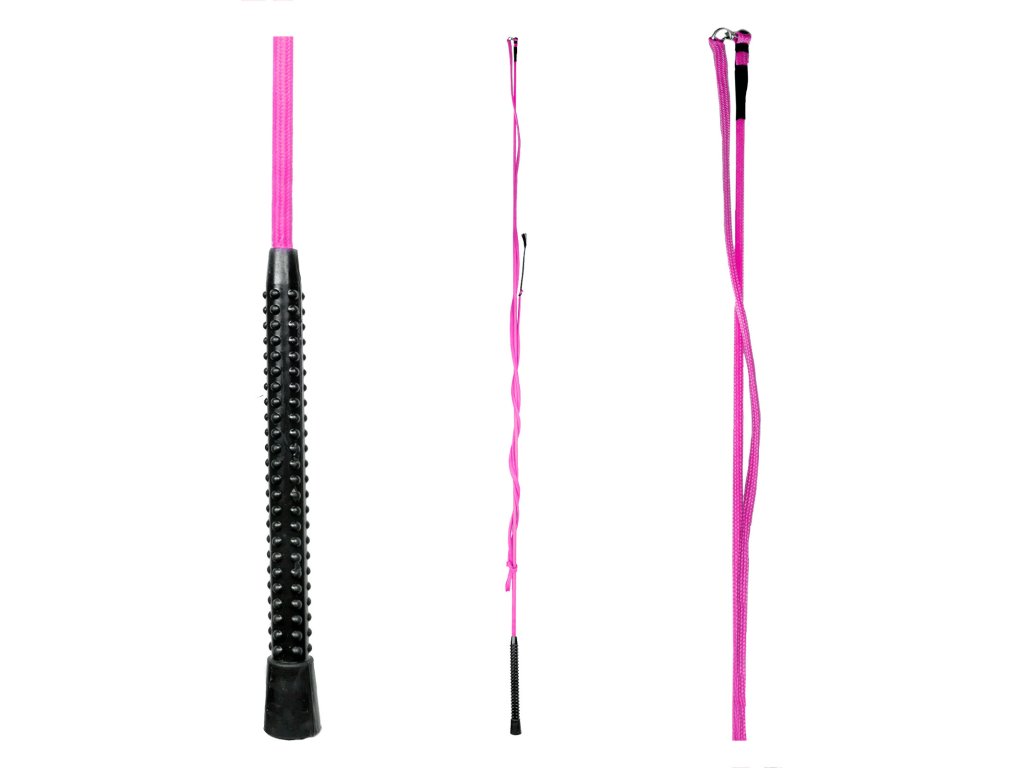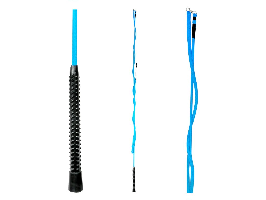 Nylonem potažený lonžovací bič s plastovou rukojetí.