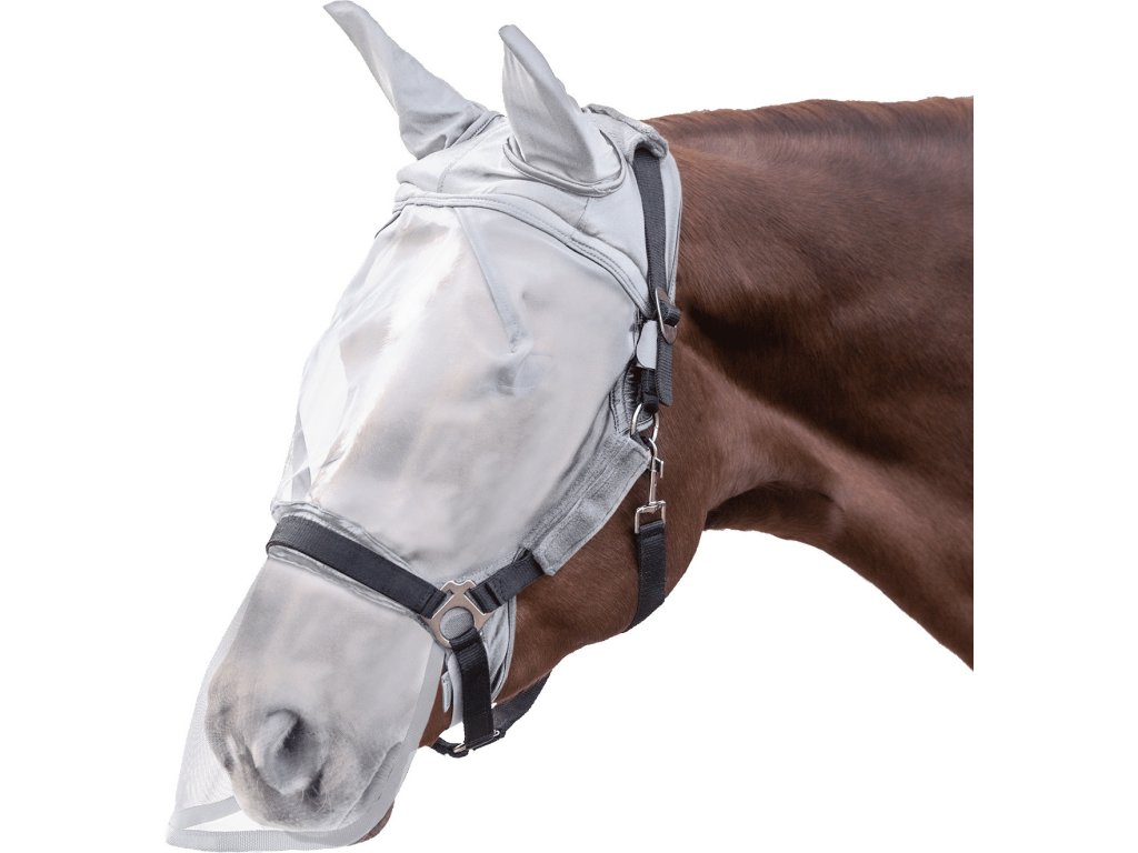 Ideální maska proti hmyzu s ochranou uší a s překrytím nozder. Vyrobena z velmi odolného síťového materiálu s UV ochranou. Vyztužená v oblasti kolem očí a s měkkým polstrováním v horní části pro maximální pohodlí. Nosní díl je elastický a lze jej individuálně nastavit. Masku lze připnout k ohlávce pomocí suchých zipů.