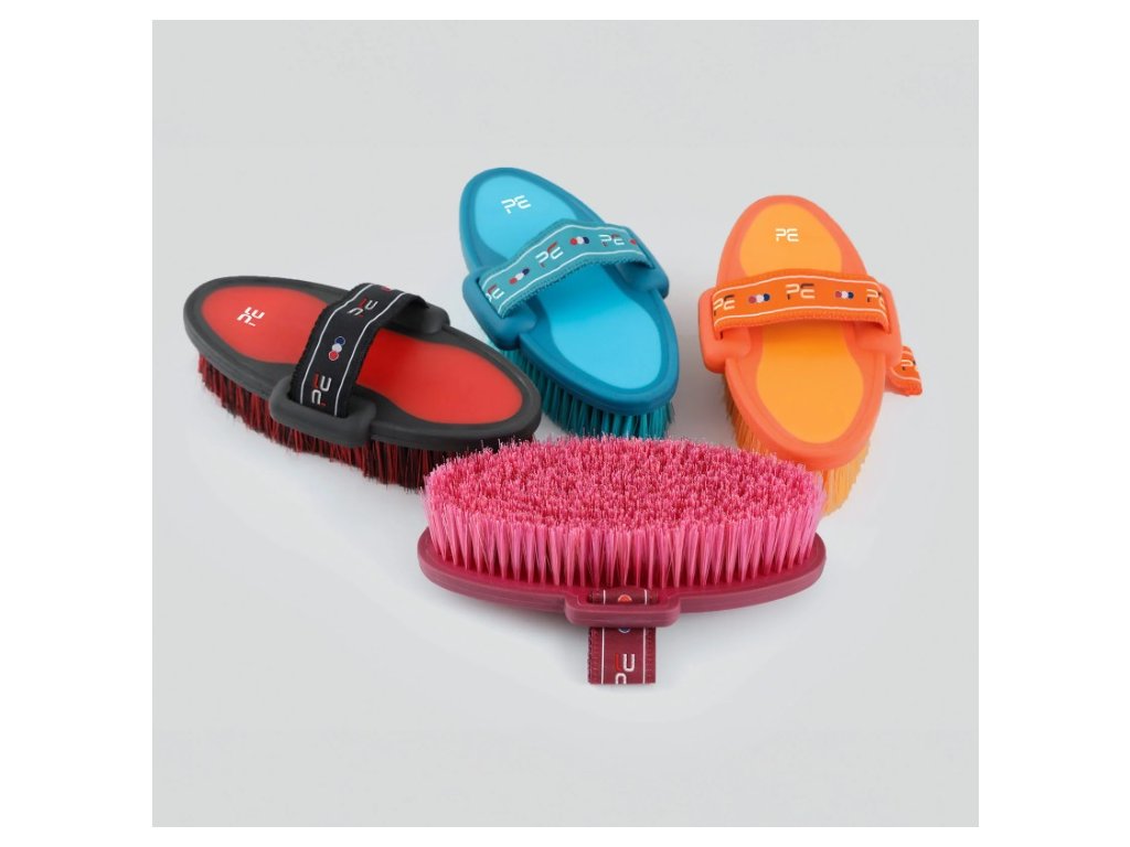 Měkký kartáč na cele tělo koně, vhodný na odstranění prachu.