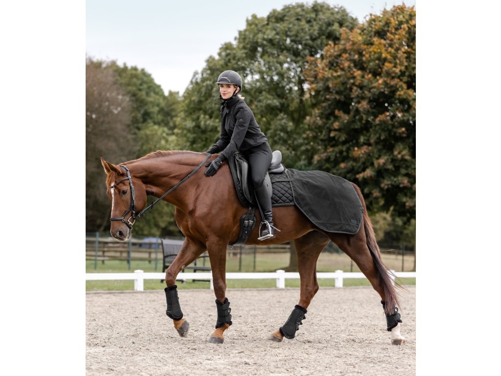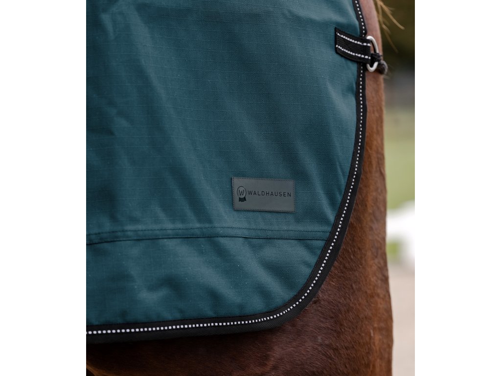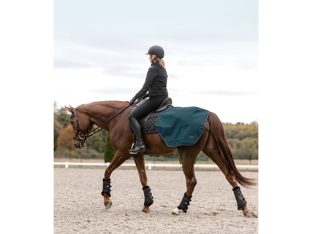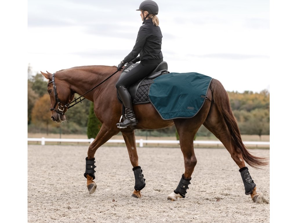 Voděodolná (vodní sloupec: 3000 mm) jezdecká deka s 50g výplní. Lemovací páska s reflexními detaily pro dobrou viditelnost. Dlouhé suché zipy pro snadné připevnění k sedlu.