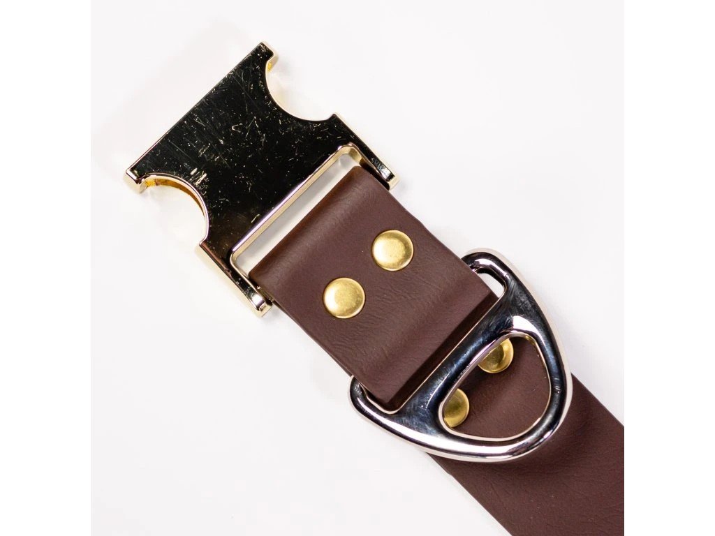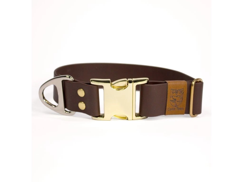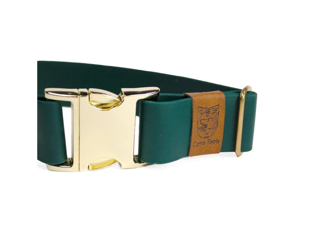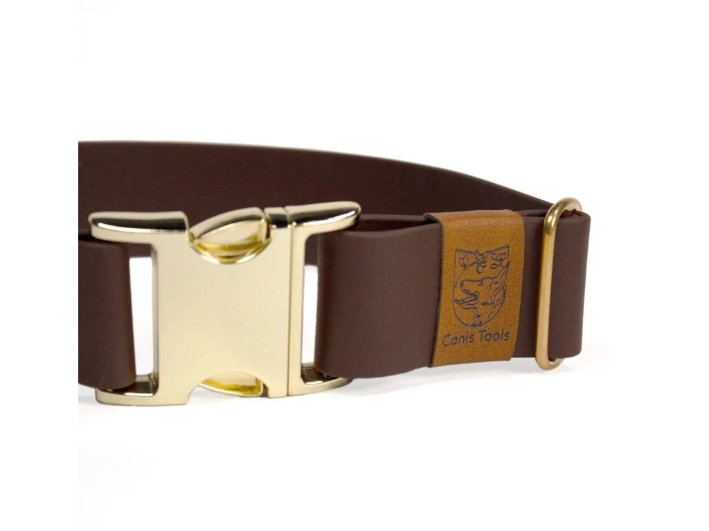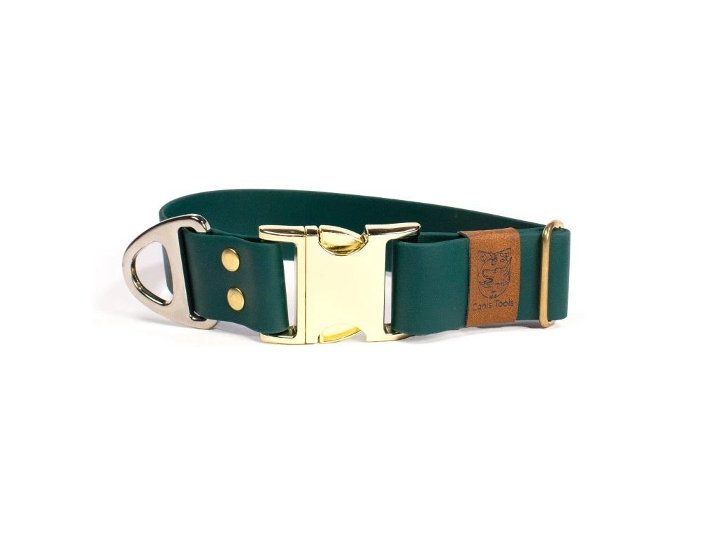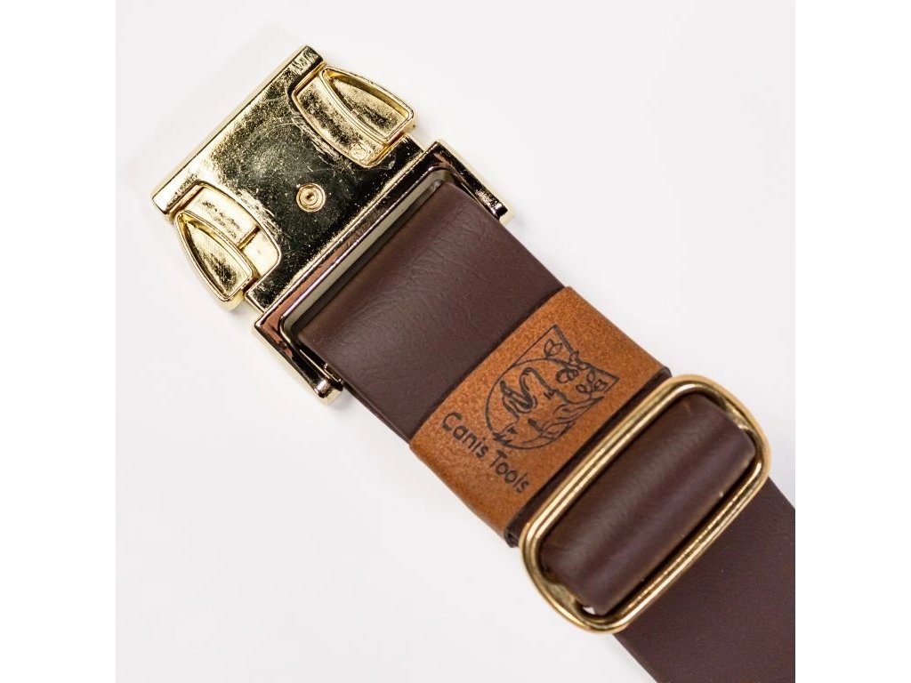 Obojek se zlatým trojzubcem a zlatými doplňky. Stříbrné trojúhelníkové oko slouží k zapnutí vodítka. Logo je zároveň pohyblivou zajišťovací sponou (po zkrácení velikosti tak nevznikne bublina z přebytečného materiálu).