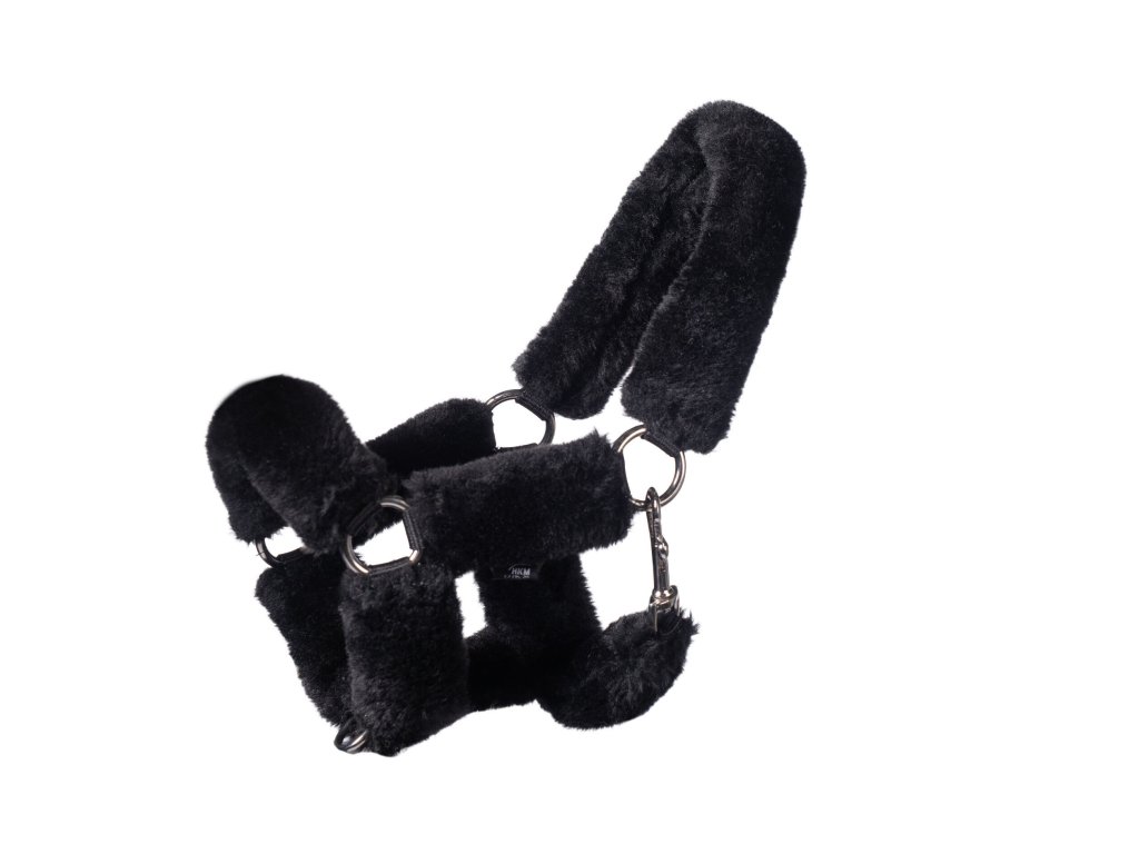 Roztomilá černá ohlávka s hebkým beránkem, která dodá tvému hobby koníkovi stylový a výrazný vzhled.