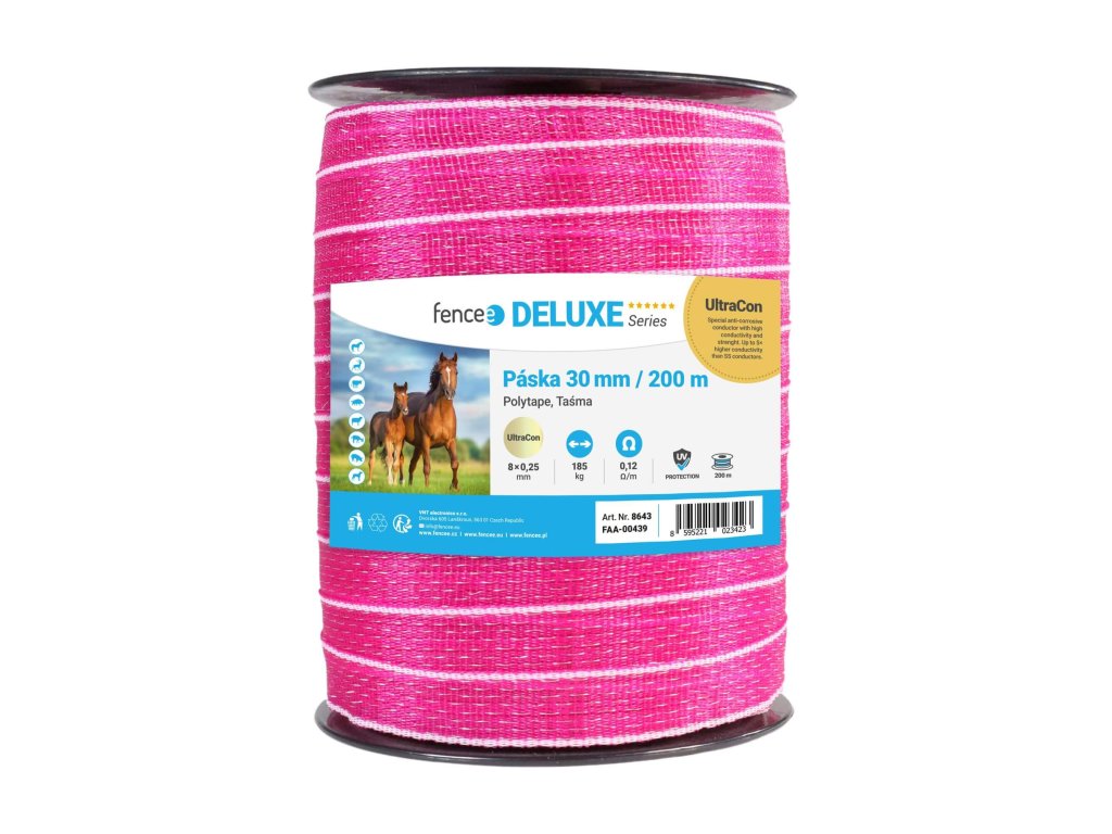 Páska pro elektrický ohradník, šířka 30 mm, růžovo-bílá, délka 200 m