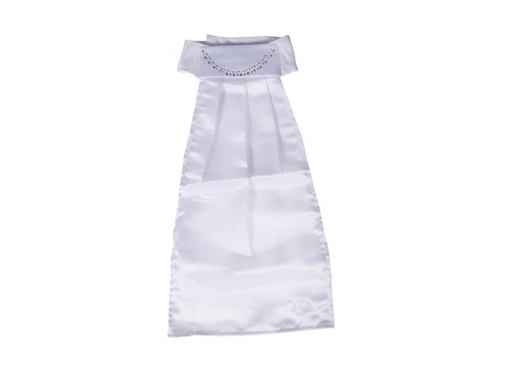 Závodní plastron bílé barvy s lehkým zdobením ze stříbrných krystalků.
