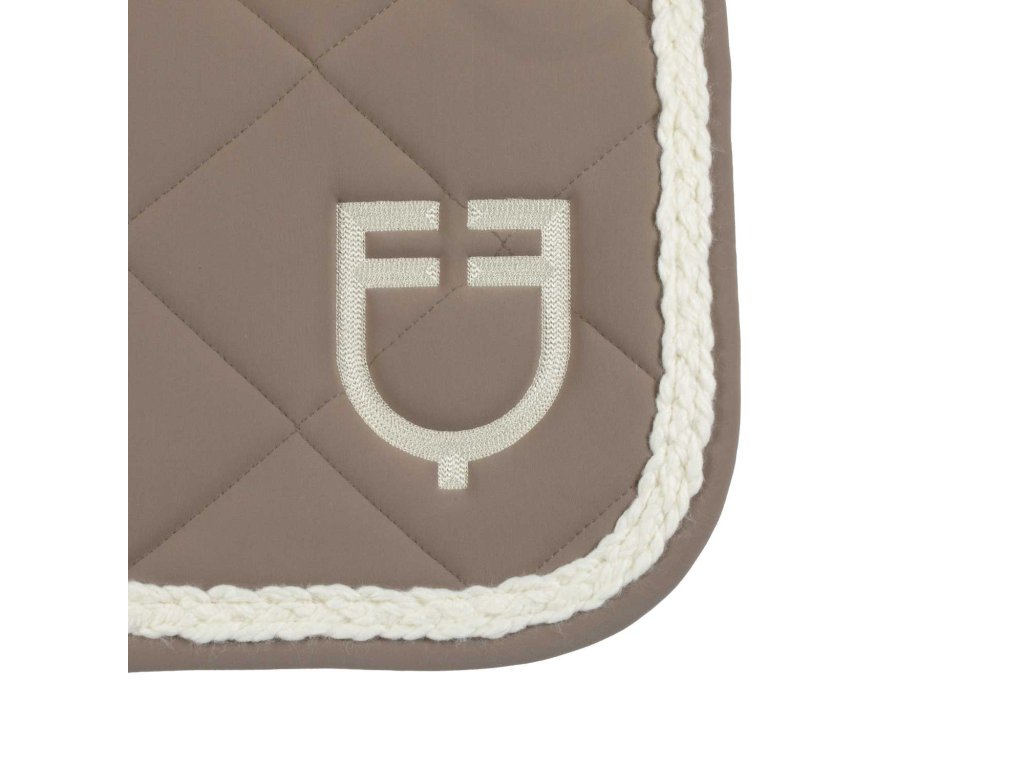 Skoková podložka pod sedlo z prodyšné technické tkaniny s diamantovým prošíváním a kontrastním opleteným kordonem podél okraje. Lze doobjednat ETH09072 čabraka na uši