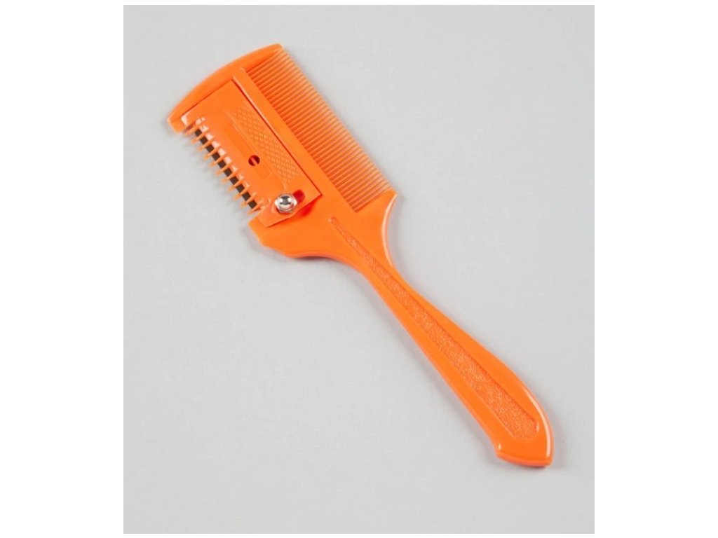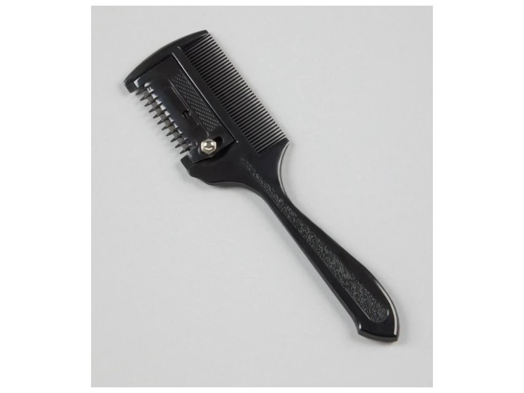Plastový seřezávací hřeben na úpravu přebytečných žíní. Jemný hřeben perfektně rozčeše žíně. Žiletka je zakryta bezpečnostními zuby.