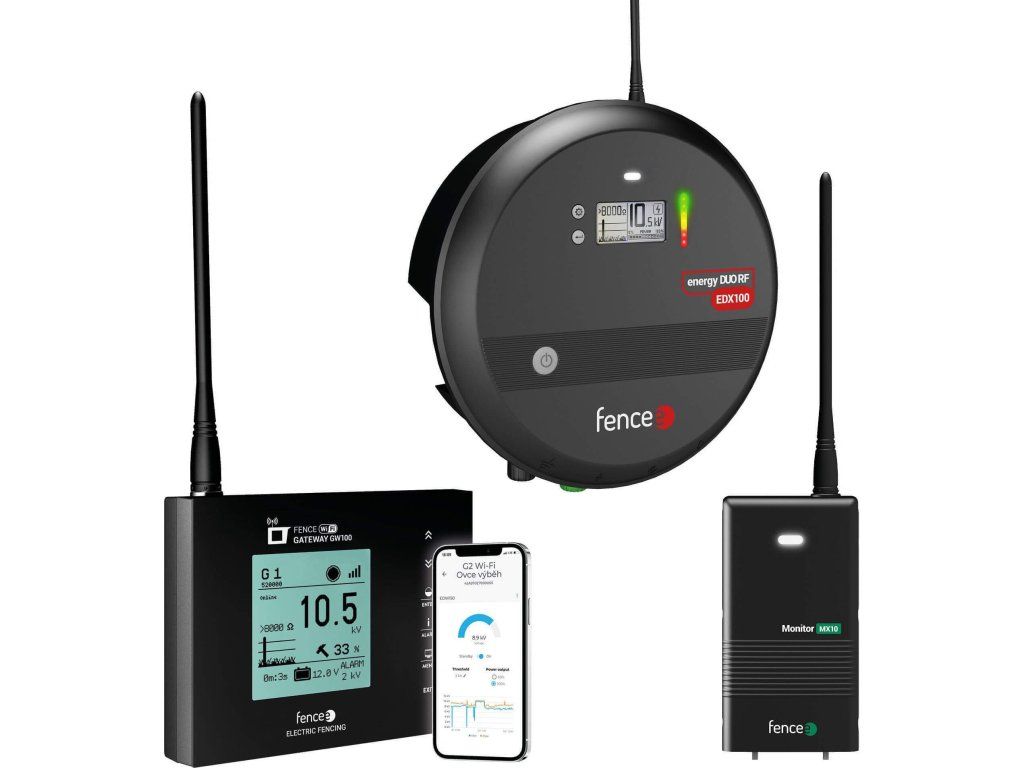 Sada chytrého elektrického ohradníku s kombinovaným RF generátorem energy DUO RF EDX100 s výkonem až 10 J a centrální jednotkou FENCE WiFi GATEWAY GW100. Sada je připravená k okamžitému připojení na fencee Cloud a vzdálenému ovládání mobilním telefonem nebo z PC. Výkonný chytrý zdroj elektrického ohradníku je vhodný i pro velmi dlouhé ohrady až 90 km a lze použít pro všechny druhy zvířat. V sadě je i kontrolní zařízení Monitor MX10, který dostanete zcela zdarma.
