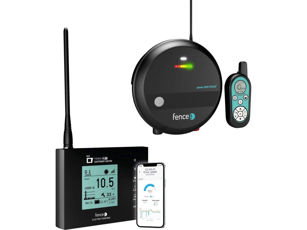Sada chytrého elektrického ohradníku s RF generátorem a centrálním zařízením WiFi gateway, které umožňuje nepřetržitý přístup do Cloudového úložiště fencee Cloud. Díky tomu získáte možnost ovládat ohradník mobilním telefonem, tabletem nebo z PC kdykoliv a odkudkoliv potřebujete.