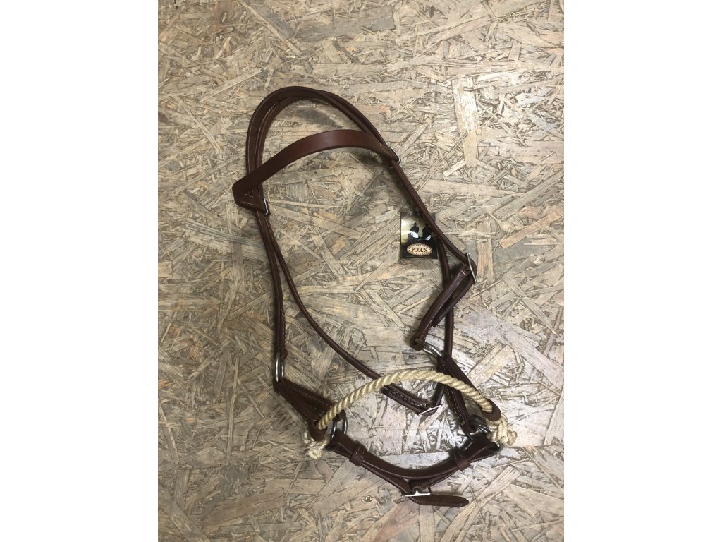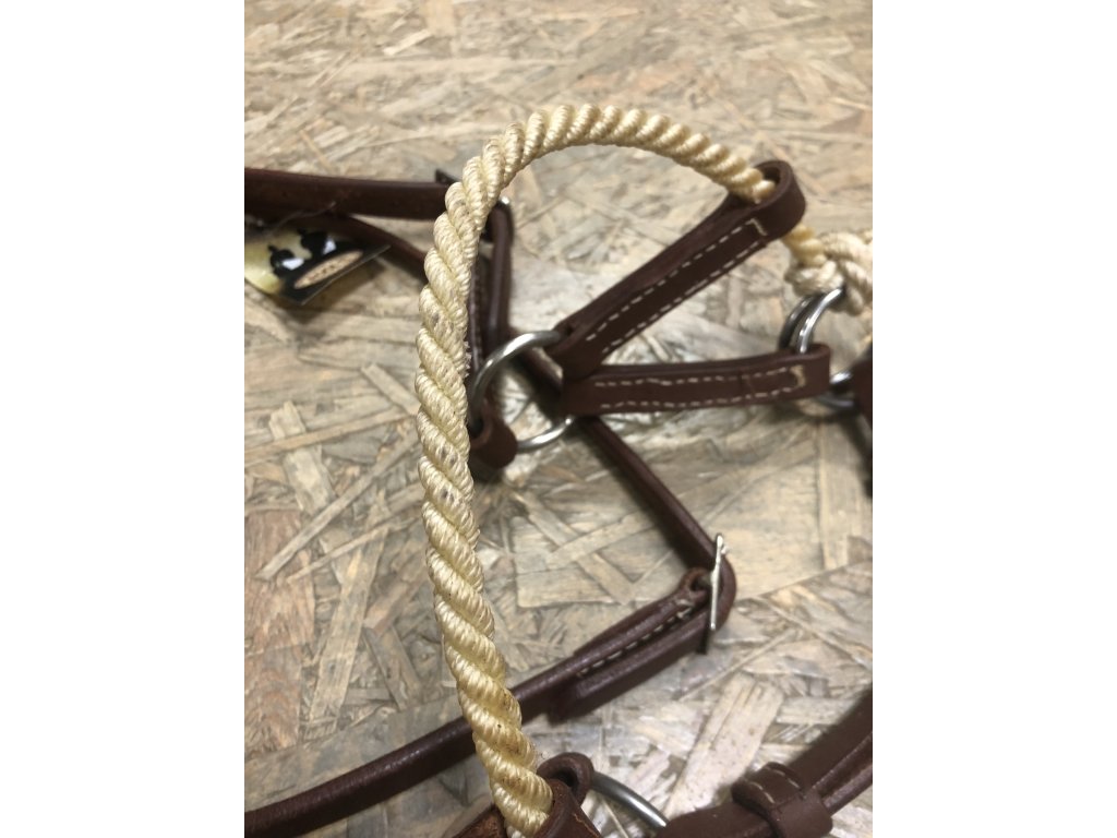 Kožený sidepull americké značky POOL's, s pleteným lýkovým nánosník a bílým prošitím. Velikost FULL