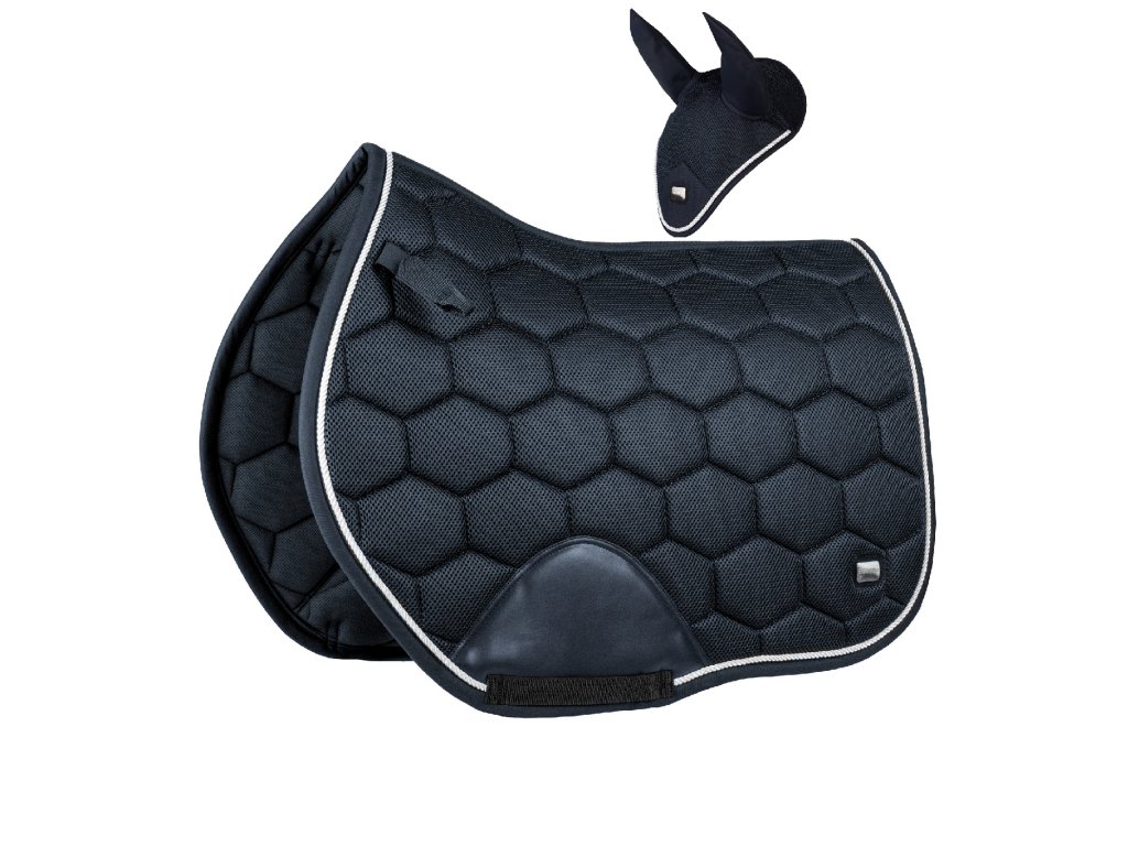 Elegantní sada z mesh materiálu, podsedlová dečka pod sedlo a čabraka na hlavu proti hmyzu.