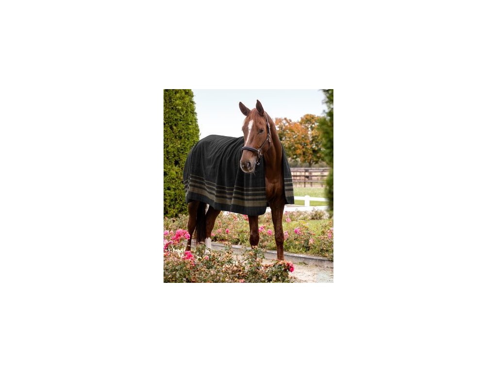 Flísová deka Sölden je stylová a poutavá. Silný materiál (330 g/m²) poskytuje optimální teplo pro koně i jezdce v chladných dnech. Díky své všestrannosti je fleecová deka Sölden skutečně všestranná. Proužky na spodním okraji přikrývky dodávají dece módní nádech.