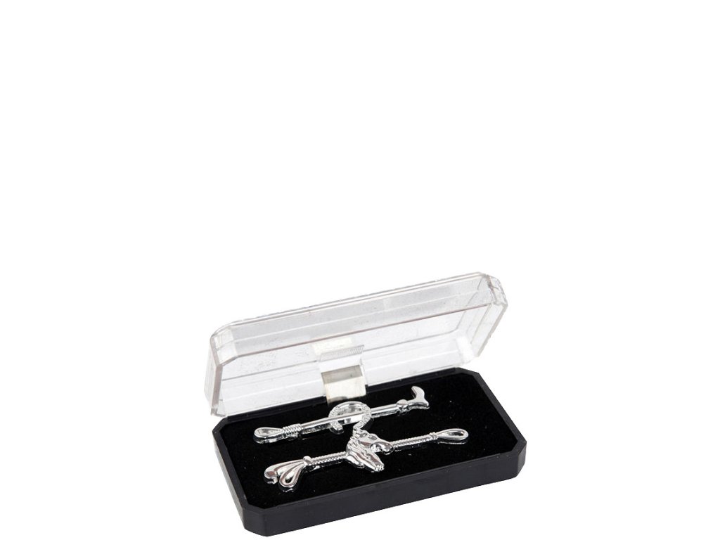 Spony na plastron značky horka ve stříbrném provedení, balení po dvou kusech.