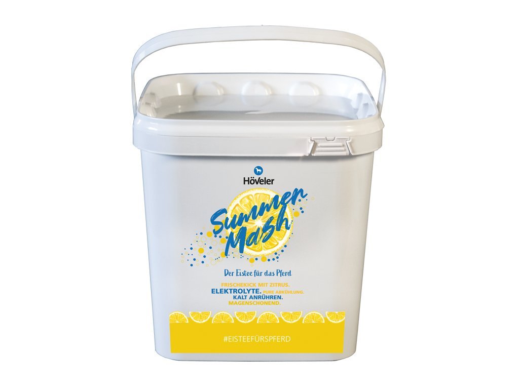 Höveler Summer Mash je doplňkové krmivo bez obilovin a šetrné k žaludku. Tento mash lze připravit jak za tepla, tak za studena a použít ho k přípravě „ledového čaje“ pro koně. Höveler Summer Mash kromě dodatečného přísunu tekutin také kompenzuje i malé ztráty elektrolytů, a tak zabraňuje zhoršení vitality koně.