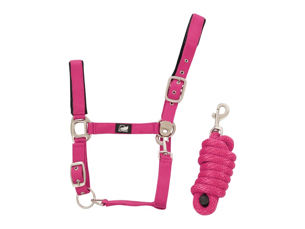 Nylonová ohlávka podložena na nánosníku a nátylníku fleecem. Zabaleno v praktické tašce