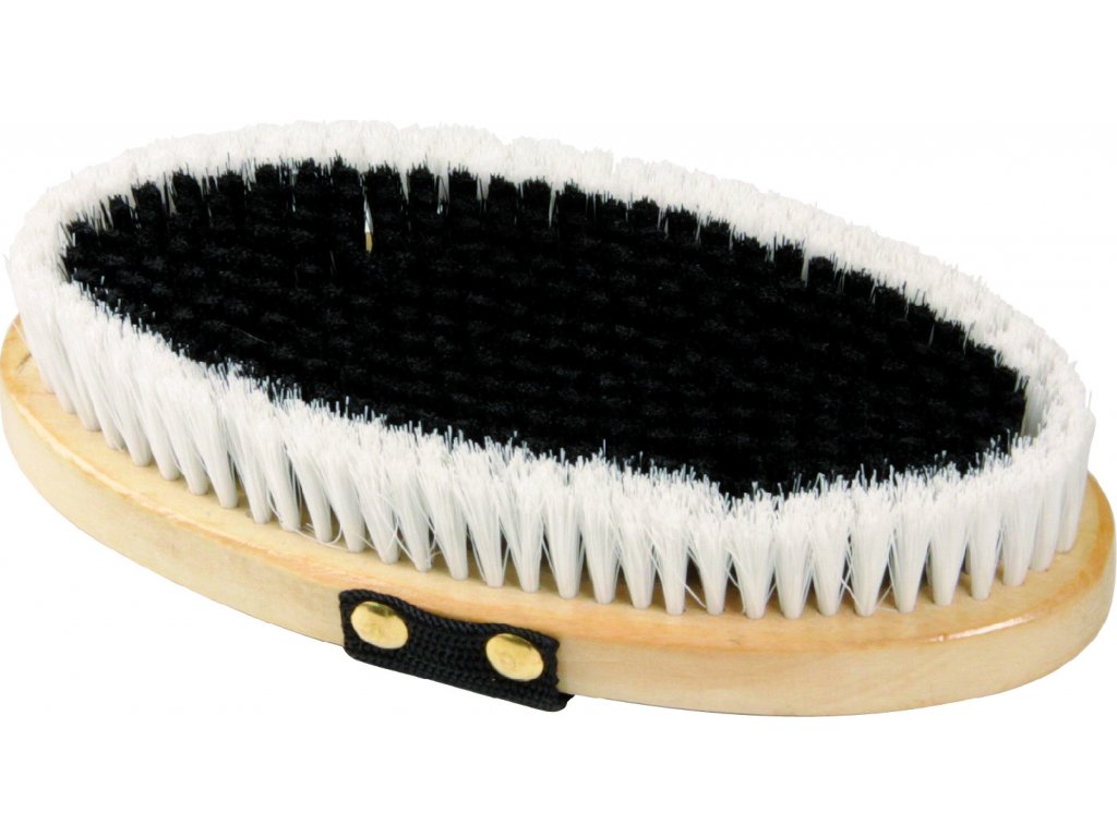 Středně silné syntetické štětiny, černo-bílé provedení, zasazeno do pravého dřeva.
