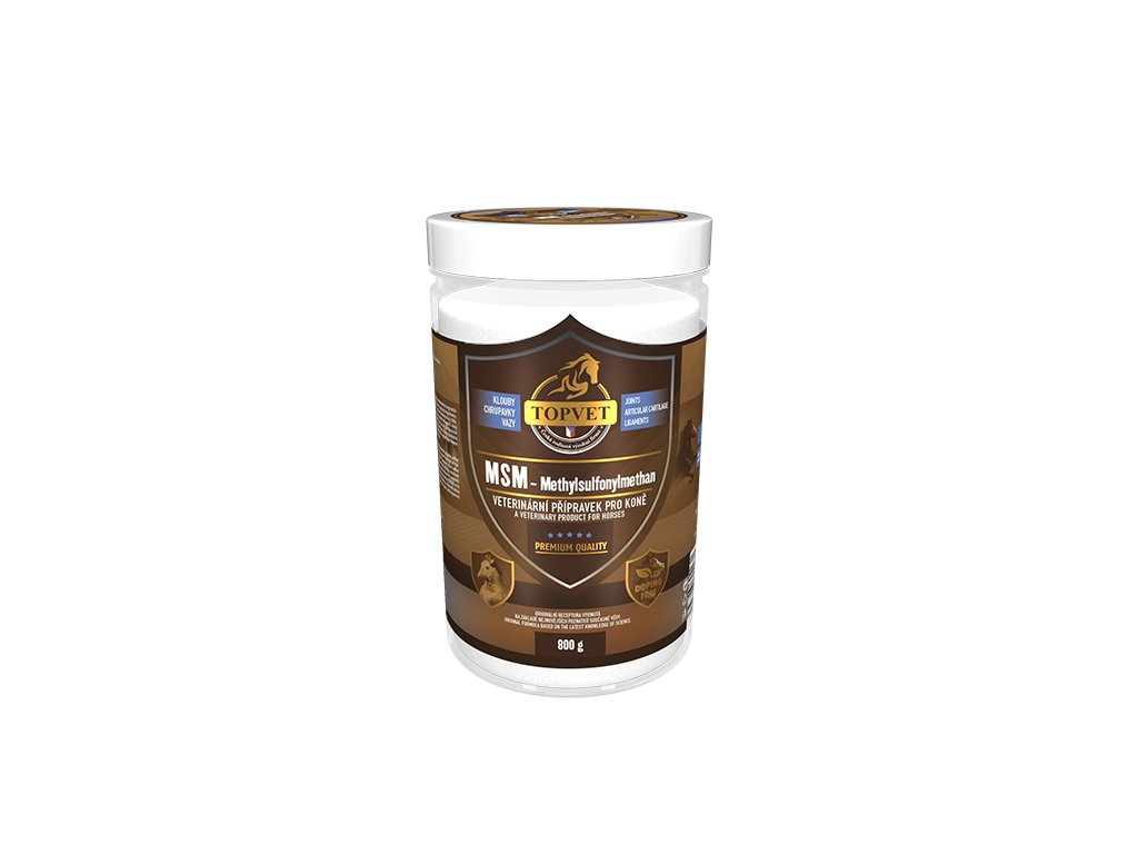 MSM neboli methylsulfonylmethan je přírodní, nejlépe vstřebatelná organická sloučenina síry. Biologicky aktivní síra je nutná pro správné fungování organismu. Při špatných stravovacích návycích a zvýšené míře stresu klesá hladina síry v těle. Používá se zejména jako kloubní výživa. MSM se podílí na syntéze kolagenu, který je základní hmotou pojivových tkání. Podporuje zdraví kloubů a vazů, kvalitu kůže a srsti. Pozitivem MSM je jeho schopnost vykazovat protizánětlivé účinky a pomáhá tělu při procesu detoxikace. Při dlouhodobém užívání MSM se zrychluje hojení a dochází ke snížení bolesti a zlepšení imunitního systému.