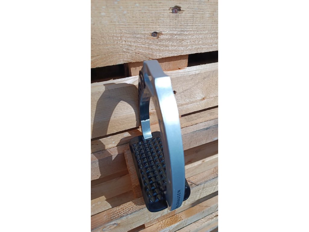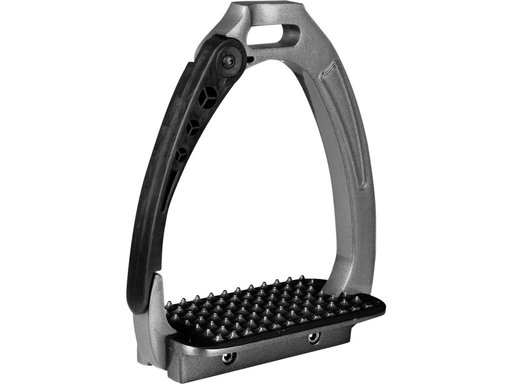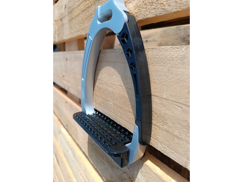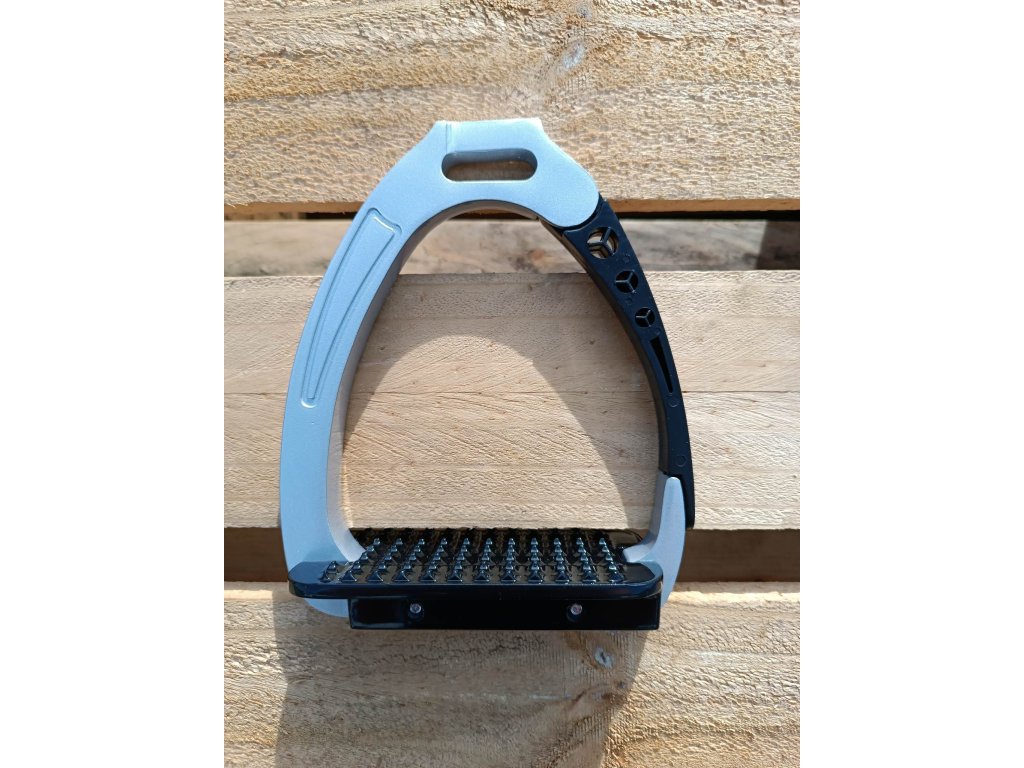 Třmeny z vysoce kvalitního hliníku s 6,5cm širokou nášlapnou plochou. V případě pádu se ramínko otevře a pustí nohu ven. Jsou o dosti bezpečnější než klasické třmeny, ale i tak, dbejte zvýšené opatrnosti a nespoléhejte jenom na třmen.