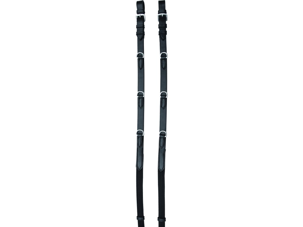 Speciální popruhové otěže Thiedemann. Obzvláště odolné popruhové otěže s koženými zarážkami a třemi našitými D-kroužky odpovídají martingalu 119001. Nejjemnější kůže a kvalitní zpracování.