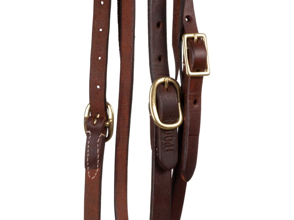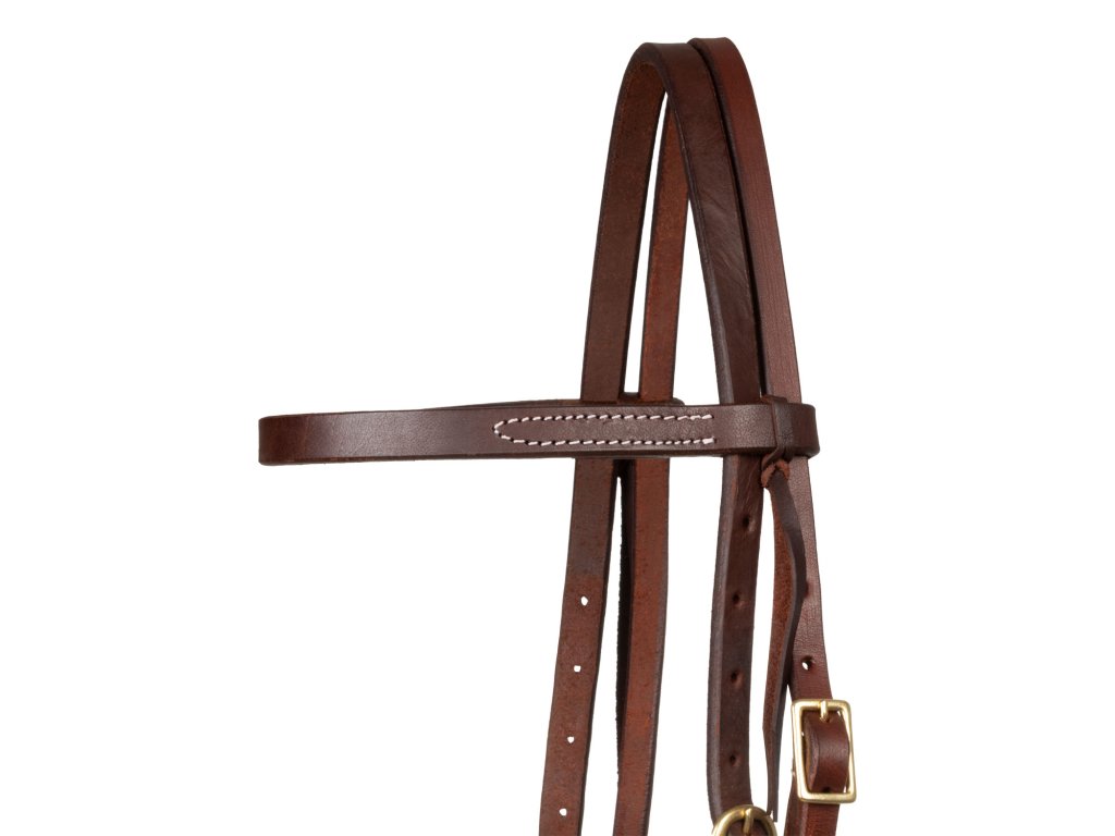 Kožená uzdečka z olejované kůže. Zlaté kování