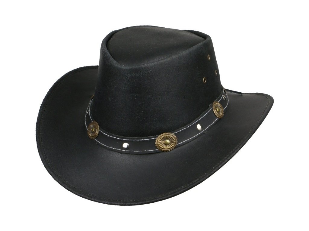 - ozdobná Conchos a pásek z pravé kůže po obvodu klobouku posilují originální western styl