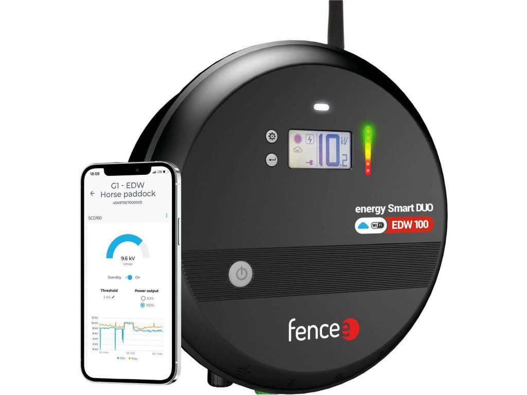 Generátor Smart DUO EDW s připojením přes Wi-Fi 2,4 GHz. Neomezené ovládání mobilním telefonem prostřednictvím aplikace fencee Cloud. 24/7 informace o aktuálním stavu ohradníku. Výkonný chytrý zdroj elektrického ohradníku (230 V/12 V), vhodný pro dlouhé a vegetací zatížené ohrady až 90 km dlouhé. Univerzálně použitelný pro všechna zvířata. LCD displej. Možnost přepínání výkonu. Optimalizovaná spotřeba energie.
