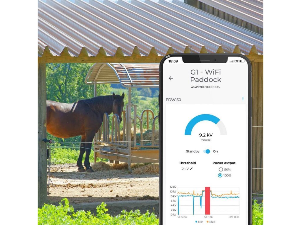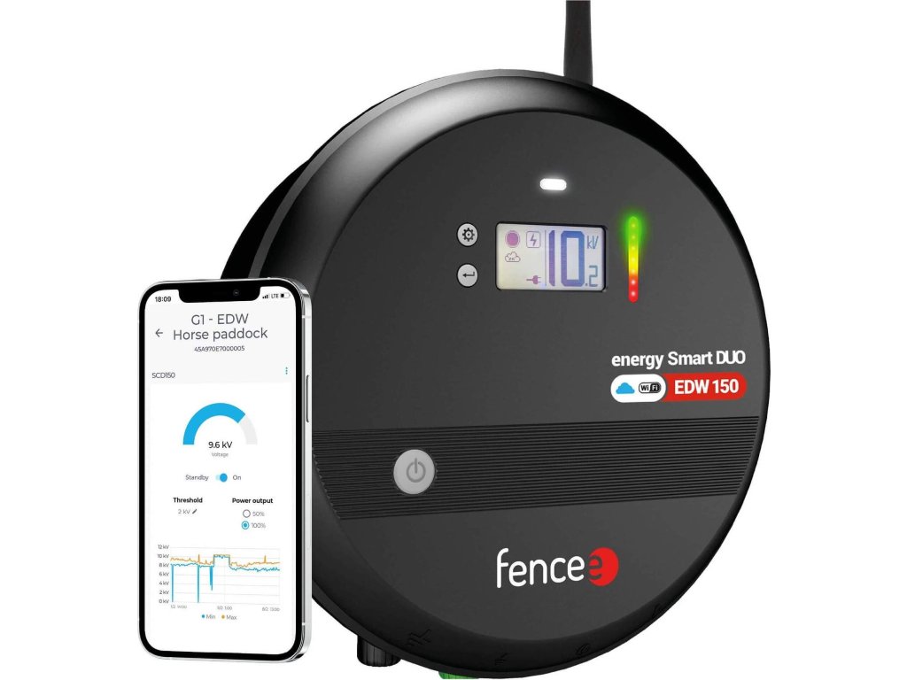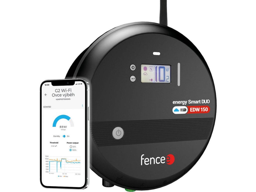 Generátor Smart DUO EDW s připojením přes Wi-Fi 2,4 GHz. Neomezené ovládání mobilním telefonem prostřednictvím aplikace fencee Cloud. 24/7 informace o aktuálním stavu ohradníku. Výkonný chytrý zdroj elektrického ohradníku (230 V/12 V), vhodný pro dlouhé a vegetací zatížené ohrady až 120 km dlouhé. Univerzálně použitelný pro všechna zvířata. LCD displej. Možnost přepínání výkonu. Optimalizovaná spotřeba energie.