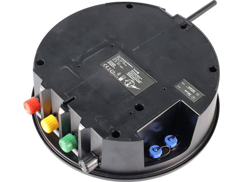 Na výstupu generátoru je umístěna černá zemnící svorka, červená svorka pro připojení ohrady s plným napětím, žlutá svorka pro připojení ohrady s trvale sníženou energií a zelená svorka pro kontrolní měření uzemnění ohradníku. Napájení pomocí adaptéru ze sítě 230 V nebo z baterie 12 V, která je použitelná také jako záložní zdroj.