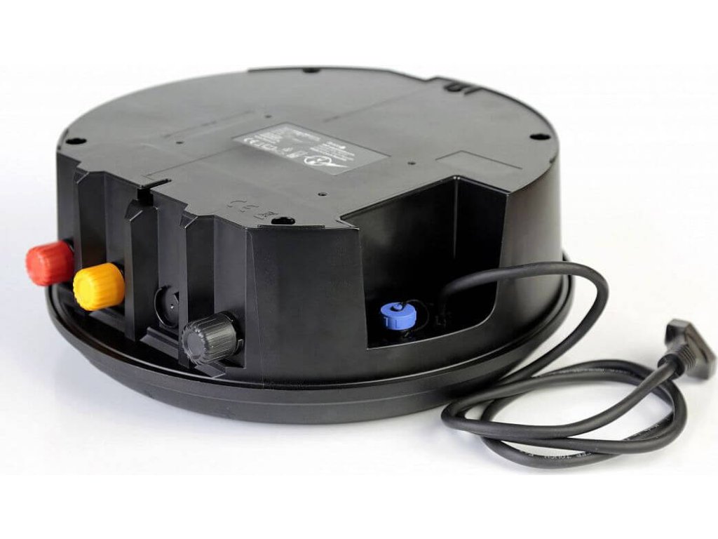 Na výstupu generátoru je umístěna černá zemnící svorka, červená svorka pro připojení ohrady s plným napětím a žlutá svorka pro připojení ohrady s trvale sníženou energií (poloviční výkon).